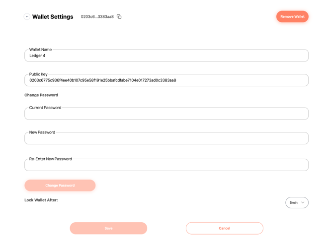 As a security measure, the option to export **Private Key** is not available for wallets imported from the Ledger.