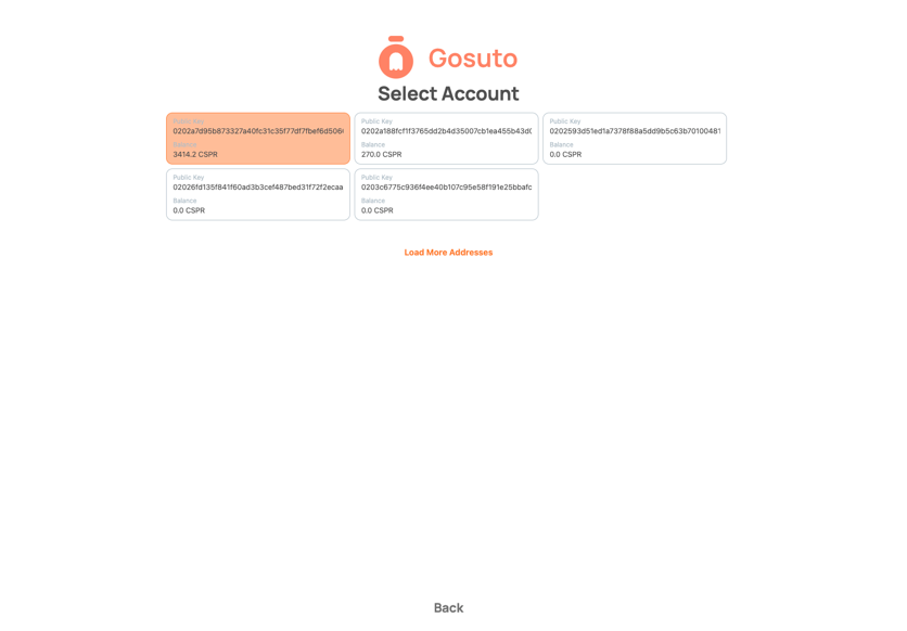 4. Choose the public key you want to connect to your Gosuto wallet and proceed to the next step.<br>